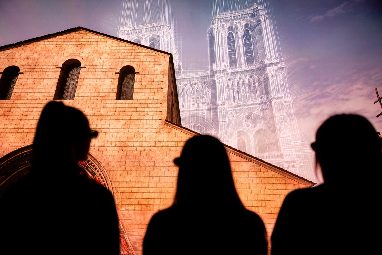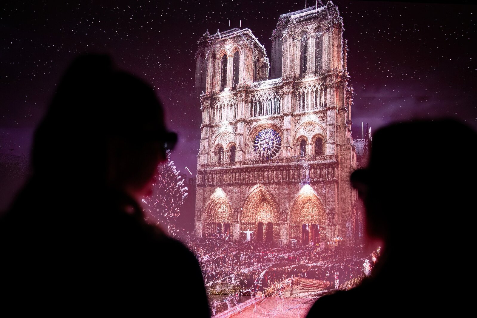 Rather than being based on film footage, the projection is based on a scientifically accurate 3D laser scan of the cathedral made before the fire. Notre-Dame has been brought to life in the studio as an interactive digital model constructed from millions of laser points.