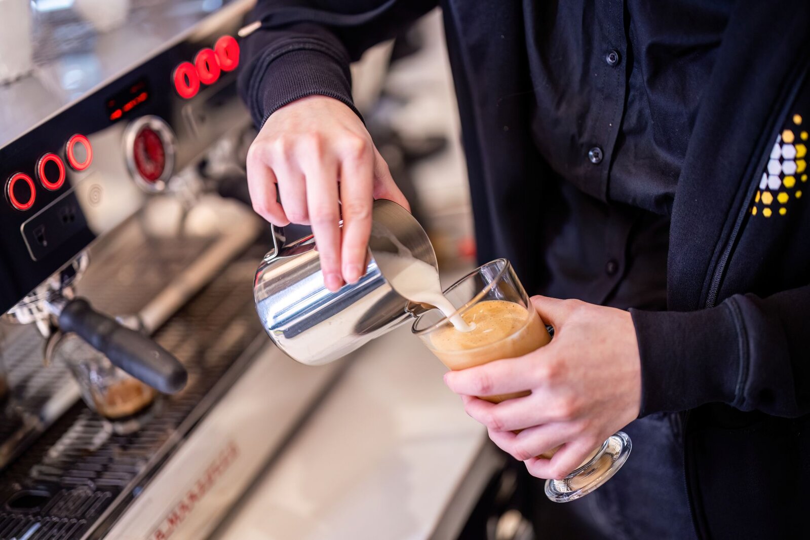 A kávézóban klasszikus és különleges kávéitalokat találsz, kiemelkedő minőségű alapanyagokból. A választék a rövid, karakteres eszpresszótól a cappuccinón és flat white-on át egészen a krémes latte-ig terjed, a jeges latte pedig tökéletes frissítő a melegebb napokon. A különböző szirupoknak köszönhetően mindenki könnyen megtalálja a saját ízvilágát – legyen az egyszerű, letisztult vagy épp édesebb, aromás kávéélmény.